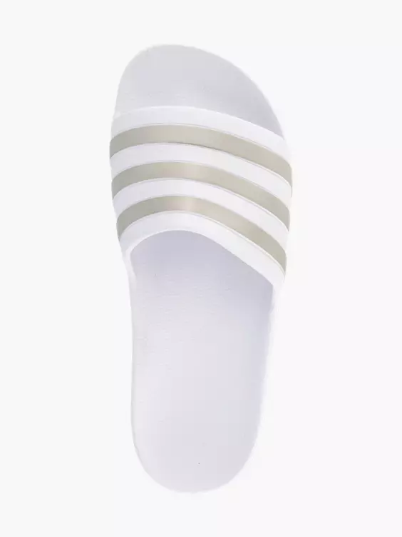 - Witte badslipper met platina strepen